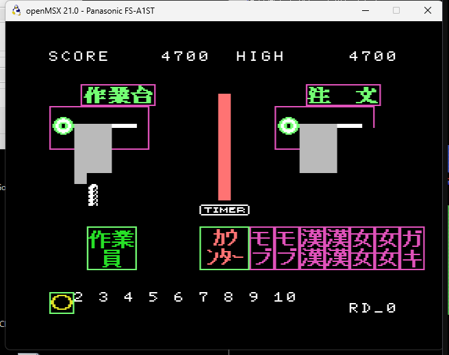 前回、プロジェクトの整理をして、とりあえずMSXのゲーム集のゲームに手を付けているんですけど、半年ぐらいGODOTでゲーム作ってたので、リハビリを兼ねていきなりアセンブラで作るという生意気なことをしないで(笑)MSX-BASICで一度ざっと組んでからアセンブラにするという過去のやり方で始めました。